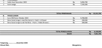 Laporan Keuangan Bulan November 2025