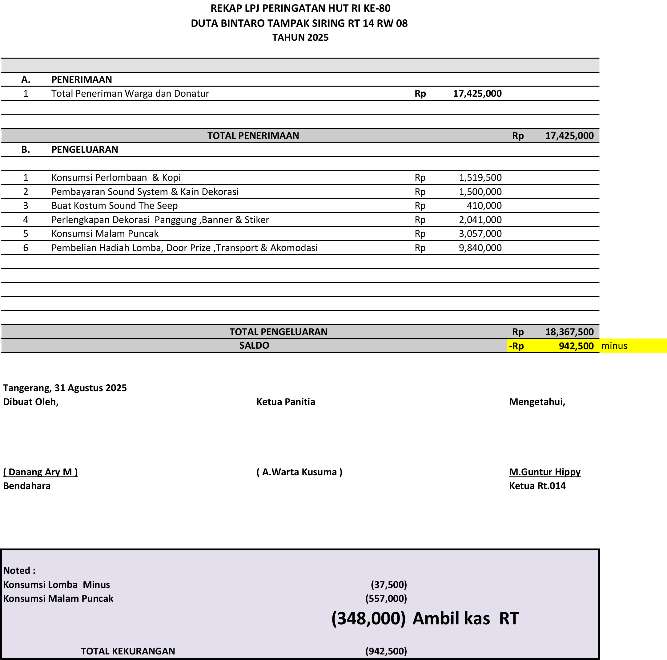Rekap LPJ Peringatan HUT RI Ke 80